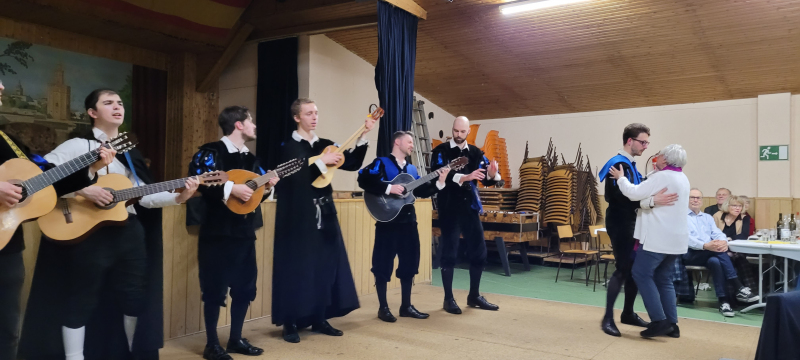 El primer momento culminante de la vida de la Asociación fue otra velada exitosa. Alrededor de 100 invitados desafiaron la lluvia y el viento y llegaron a la sede del club de la asociación cultural española ACRA en la Triererstrasse. Poco antes del inicio oficial del evento, el salón se llenó de invitados expectantes y la sala se llenó del olor a paella recién preparada. Pero no sólo convencieron el olor y el aspecto, sino que también el sabor fue, con evidencia, otro poema culinario. También hubo tablas de queso manchego y jamón serrano, pimientos de padrón, gambas al ajillo y otras delicias españolas. Como momento musical destacado, la Asociación volvió a conquistar a la Tuna Universitaria de Maastricht, que el año pasado literalmente hizo perder la cabeza a sus invitados. Y esta vez también los 8 jóvenes consiguieron animar a los invitados a cantar, bailar y aplaudir con entusiasmo con su animada actuación. Cabe destacar que en esta ocasión sólo estuvo presente un español en el grupo, que está íntegramente dedicada a la tradición estudiantil española, es un grupo internacional. Sin duda, también es destacable el hecho de que también se incluya a un joven de Ucrania, que comenzó sus estudios en Maastricht poco antes del estallido de la guerra. Fue difícil volver a despedirse de los cantantes, pero el gran ambiente duró mucho tiempo, y quizás alguno de ellos todavía tarareaba alegremente de camino a casa…
